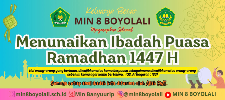 Dalam rangka menyambut datangnya Bulan Suci Ramadhan 1447 H, MIN 8 Boyolali menggelar kegiatan Pawai Ta’aruf Jelang Ramadhan pada hari Kamis, 12 Februari 2026.